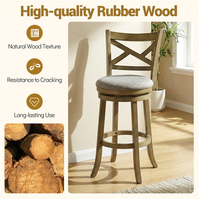 Elevate your dining area with our 2-piece swivel bar stool set. Designed with comfort in mind, these bar-height chairs feature padded seats, cushions, and built-in footrests. The 360-degree swivel feature allows for easy movement and interaction, making them ideal for any kitchen or bar setting. Made from premium materials, these bar stools are both durable and stylish. Whether for casual dining or entertaining guests, they are a sophisticated and practical seating solution.