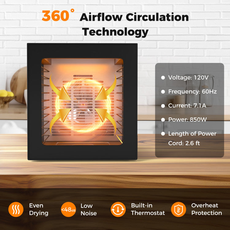 ● Advanced Airflow Technology: Utilizing 360° airflow circulation technology, this dehydrator machine promises thorough and even drying. Whether you are preparing fruits, vegetables, jerky, herbs, or pet treats, rest assured that each piece will be perfectly dehydrated with low noise levels of <48dB.