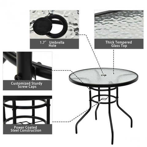 ● Modern Stylish Look: Gorgeous round shape, compact structure and beautiful texture surprisingly strengthen the aesthetic performance. The combination of black finish and glass top reflects modern people's pursuit of elegant taste, adding a touch of beauty to highlight your outdoor decor.