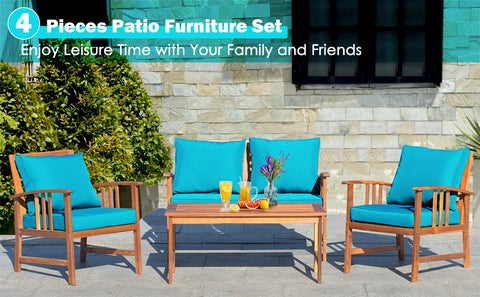 This 4 Pcs garden wooden patio furniture set is a good choice for you.