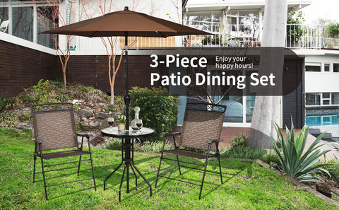 The 3 piece patio bistro set allows you to enjoy leisure time while sunbathing and having a relaxing coffee time.