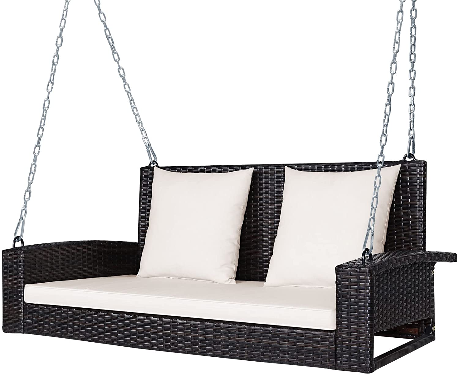 Spacious and Comfortable Seats: Spacious two-seater, porch swing provides enough space for two people to swing and relax. The swing chair also comes with 1 seat cushion and 2 back cushions for more softness and comfort. In addition, the seat cushion is designed with zipper for easy removal and cleaning.