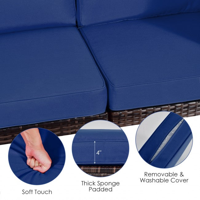 Sturdy Frame and PE Rattan: The overall structure of this outdoor patio furniture set consists of two main parts. One is a sturdy, rust-resistant steel frame made of powder-coated heavy-duty metal for greatly improved stability. The second part is PE rattan made of synthetic handmade wicker, which is durable and can withstand various weather changes, ensuring the sofa set can be used for a long time.