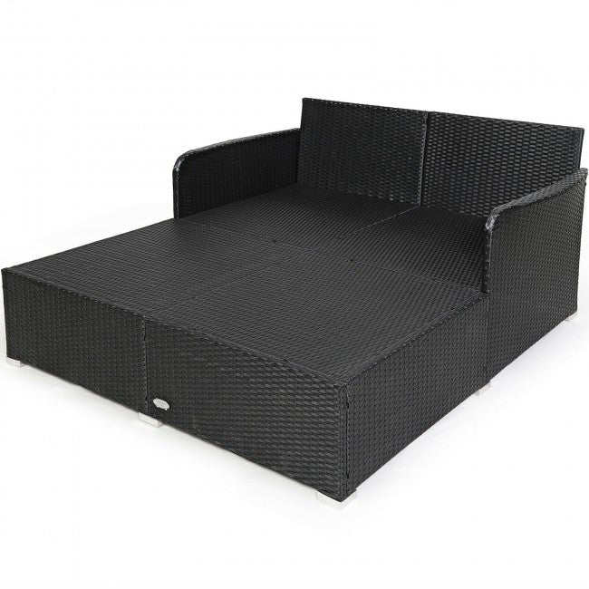 Whether you're entertaining guests or just enjoying some leisure time alone, this stylish and comfortable outdoor rattan daybed will satisfy you. The seats are spacious enough for you and your friends to enjoy private time together. Armrests and backrests on both sides can effectively prevent falls during lunch breaks. Thick cushions and free pillows are filled with high-density foam for added softness and comfort. More, you can simply zip the seat cover up and clean it to make it look brand new. High quality rattan provides better weather resistance and durability for this outdoor furniture set.